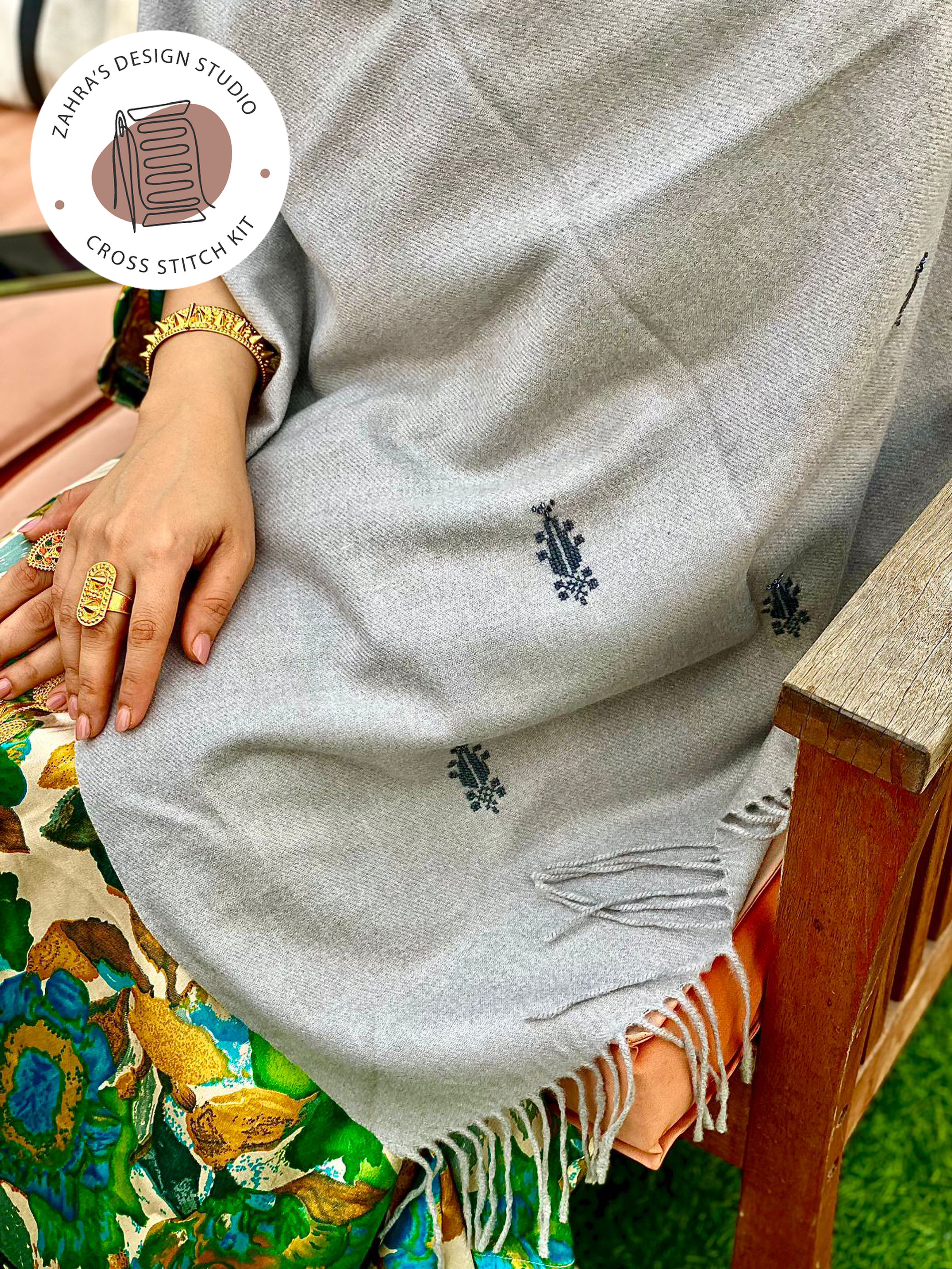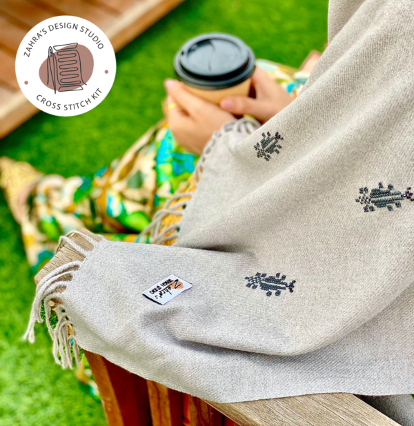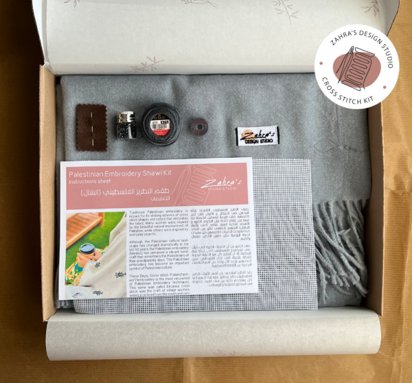 Experience the glory of Palestinian embroidery with your own hands. This intermediate cross stich kit was designed to simplify the gorgeous Palestinian patterns and add them to high quality Kashmiri shawls, using Palestinian cross stitch fabric โMarkah fabricโ. The kit includes a step-by-step video to help you stitch your own Palestinian shawl.